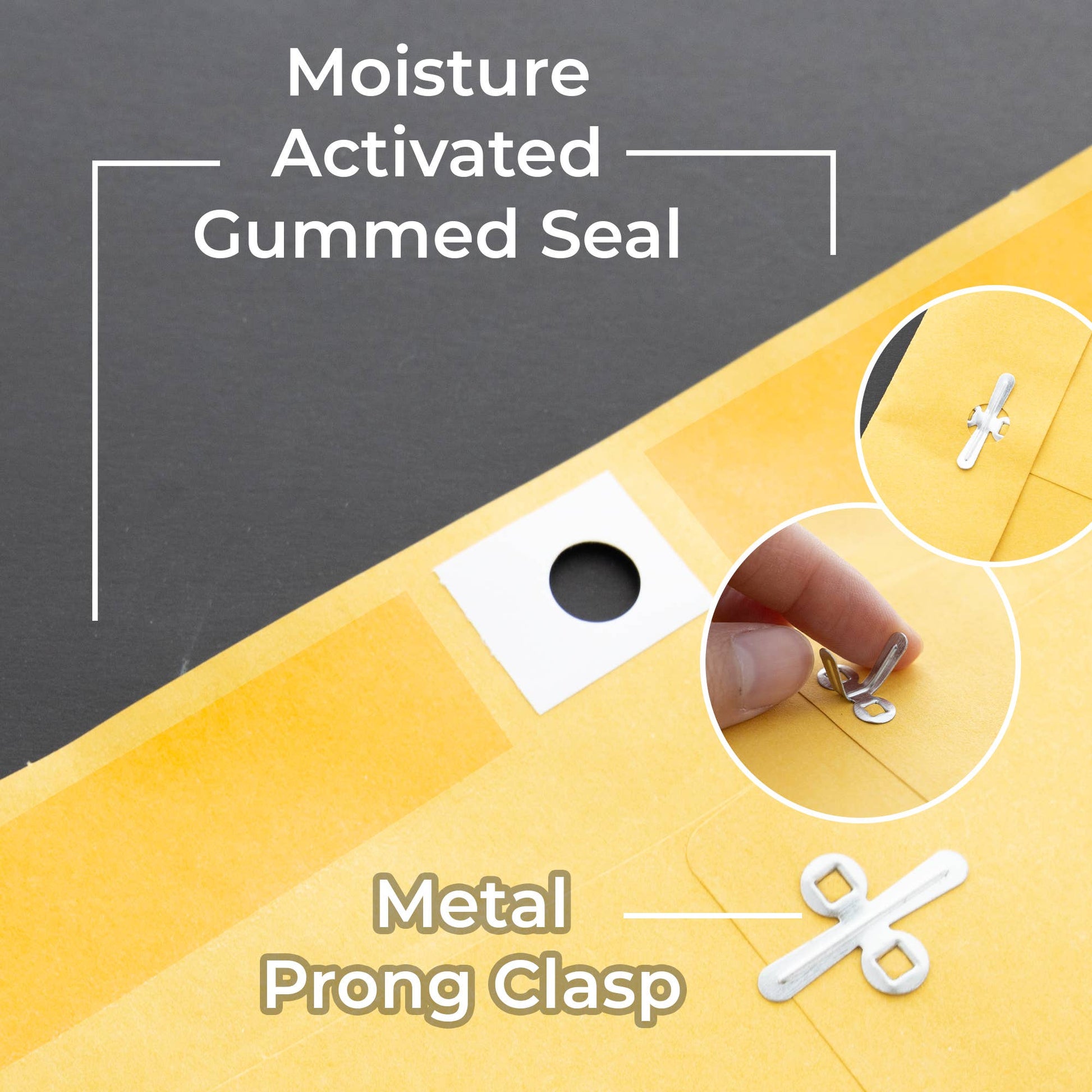 DOUBLE SEAL DESIGN. Offers reliable security for personal and professional mailing; Sturdy metal dual prong clasps and gummed seals with tough adhesive glue.