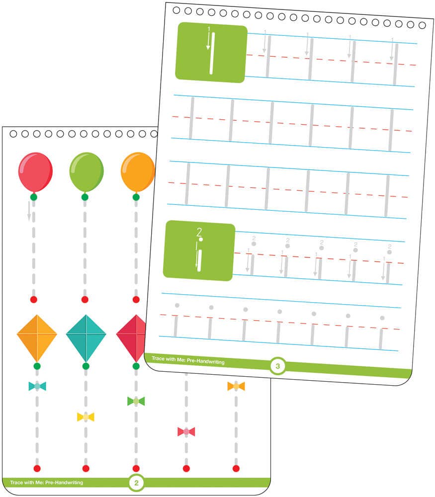 The Pre-Handwriting Tablet for ages 3+ helps children practice drawing lines, circles, and other handwriting strokes, followed by the letters that use each stroke. This spiral-bound, travel-friendly tablet features 32 wipe-clean pages and an included dry-erase pen to help children master handwriting skills and letter recognition. Each colorful activity page helps develop fine motor skills, teaches beginning reading concepts, and prepares children for school success. The Trace with Me series gives your child the practice they need to master writing skills and more. Each activity book features a variety of colorful tracing activities that help young learners develop fine motor skills. These activities also provide opportunities for your child to practice reading, math, and basic skills.