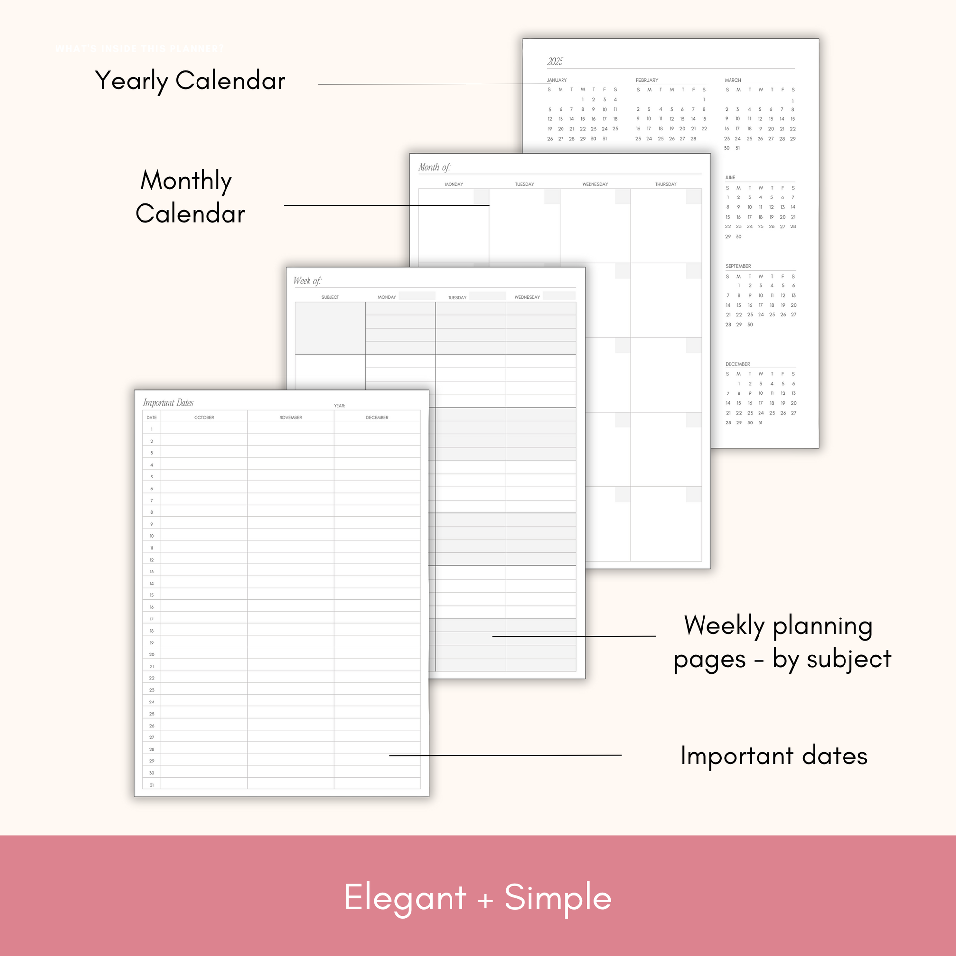 • Weekly Planner Pages by Subject: Organize lesson plans and activities for each subject on dedicated weekly pages.