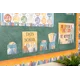 This earthy calendar display comes with easy-to-read number pieces, colorful monthly headers, and additional pieces for holidays and special occasions. It also includes pieces for counting the days of the school year, as well as pieces for the weather, seasons, days of the week, yesterday, today, and tomorrow. Blank calendar measures 24" x 18". 109 total pieces.