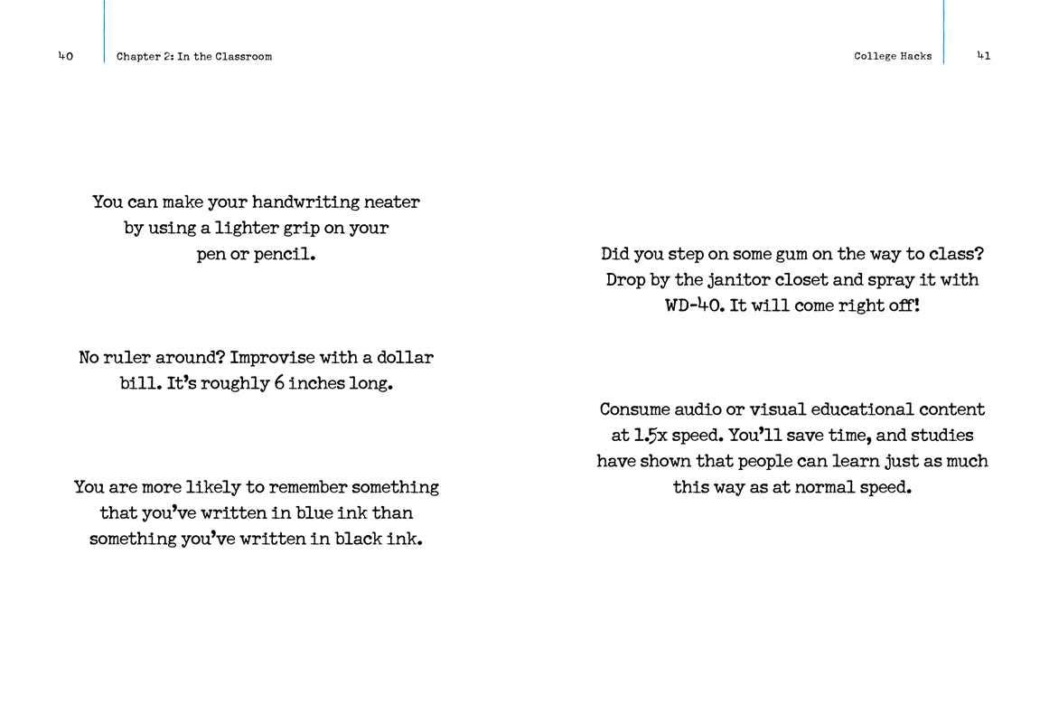 College Hacks: Updated and Expanded is the essential guide for every college student. Whether you’re preparing for an exam, aiming to be the beer pong champ, or trying to remove a stubborn stain before an interview, this book has you covered.